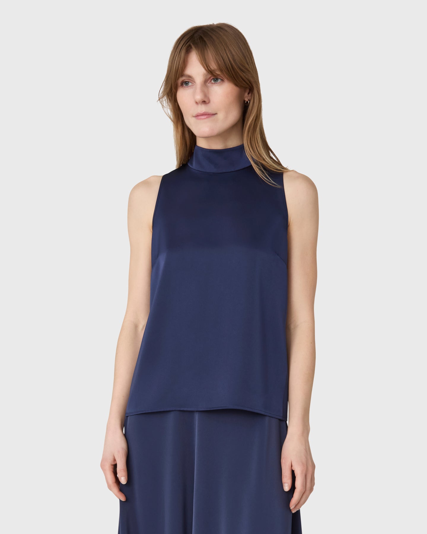 The Eveningwear collection features elegant dresses, bottoms, tops and singlets in satin and silk, in various dark and light hues.