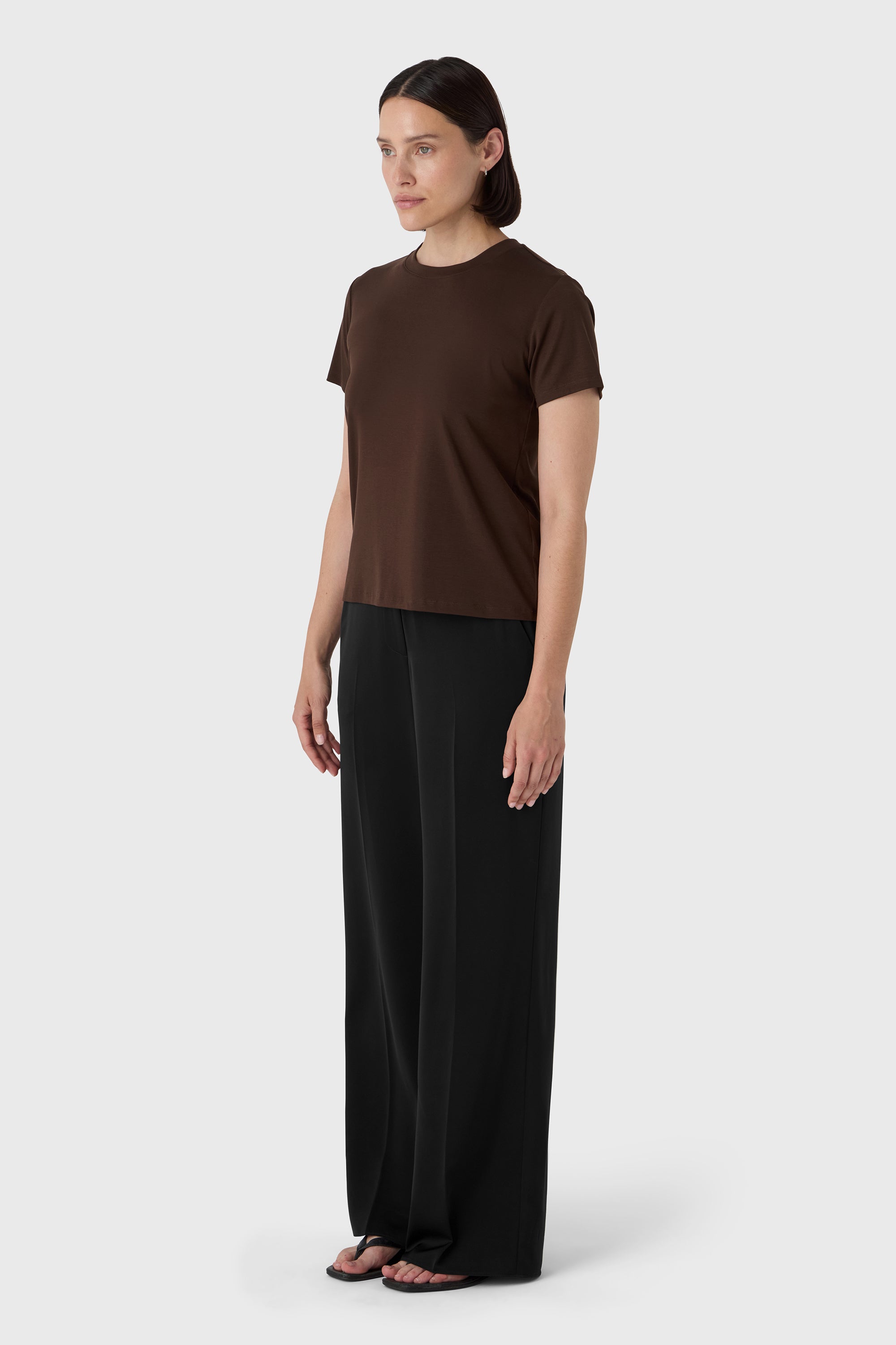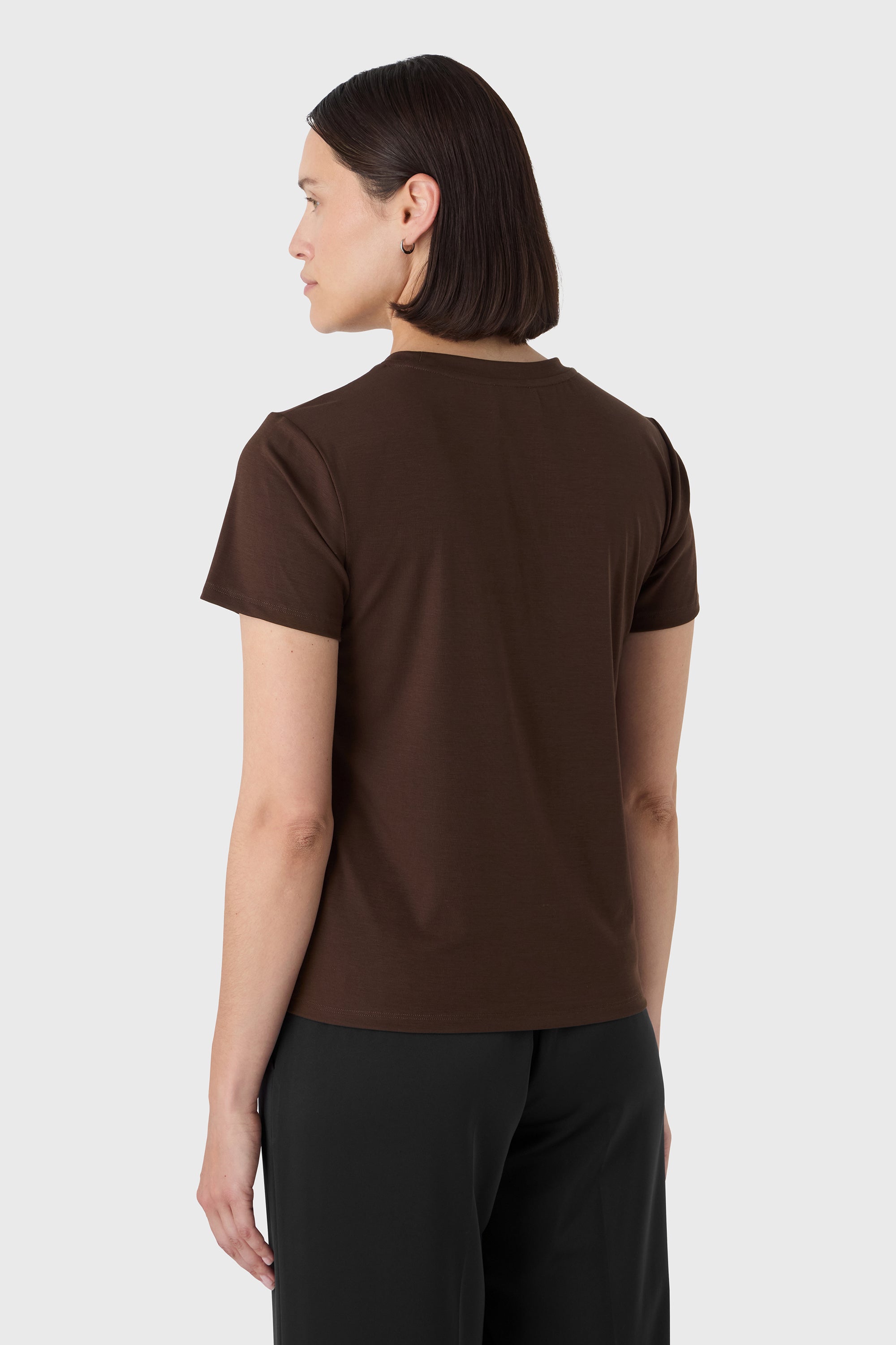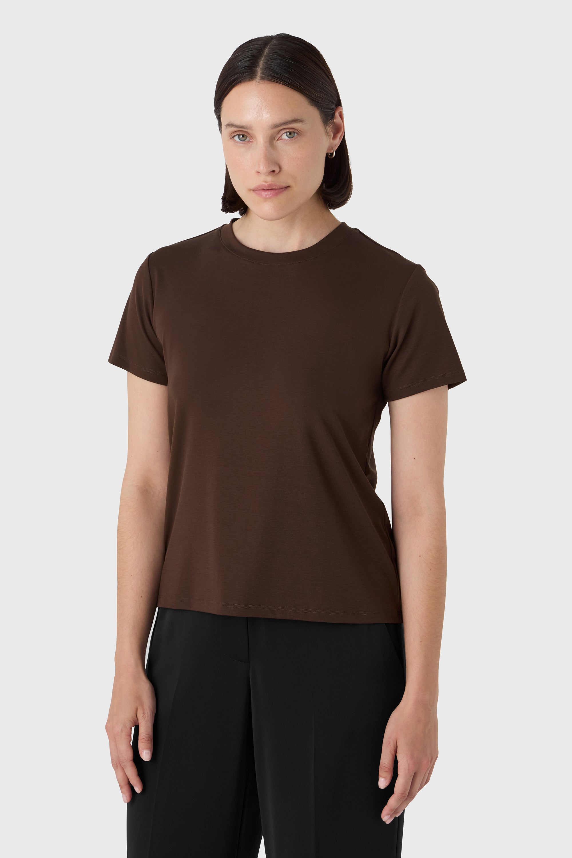 Un essentiel rehaussé. Le T-shirt Carol est confectionné en jersey tencel ultra-doux avec un col rond classique et une finition soignée. Sa sensation fluide et son tombé naturel en font une couche incontournable sous un tailleur ou portée seule.
