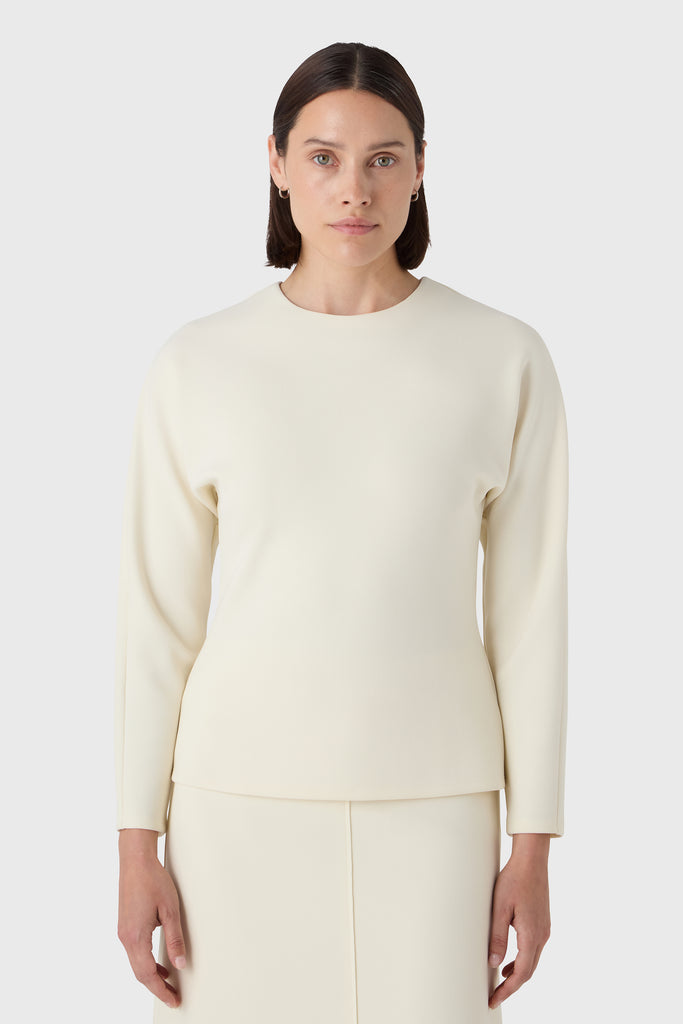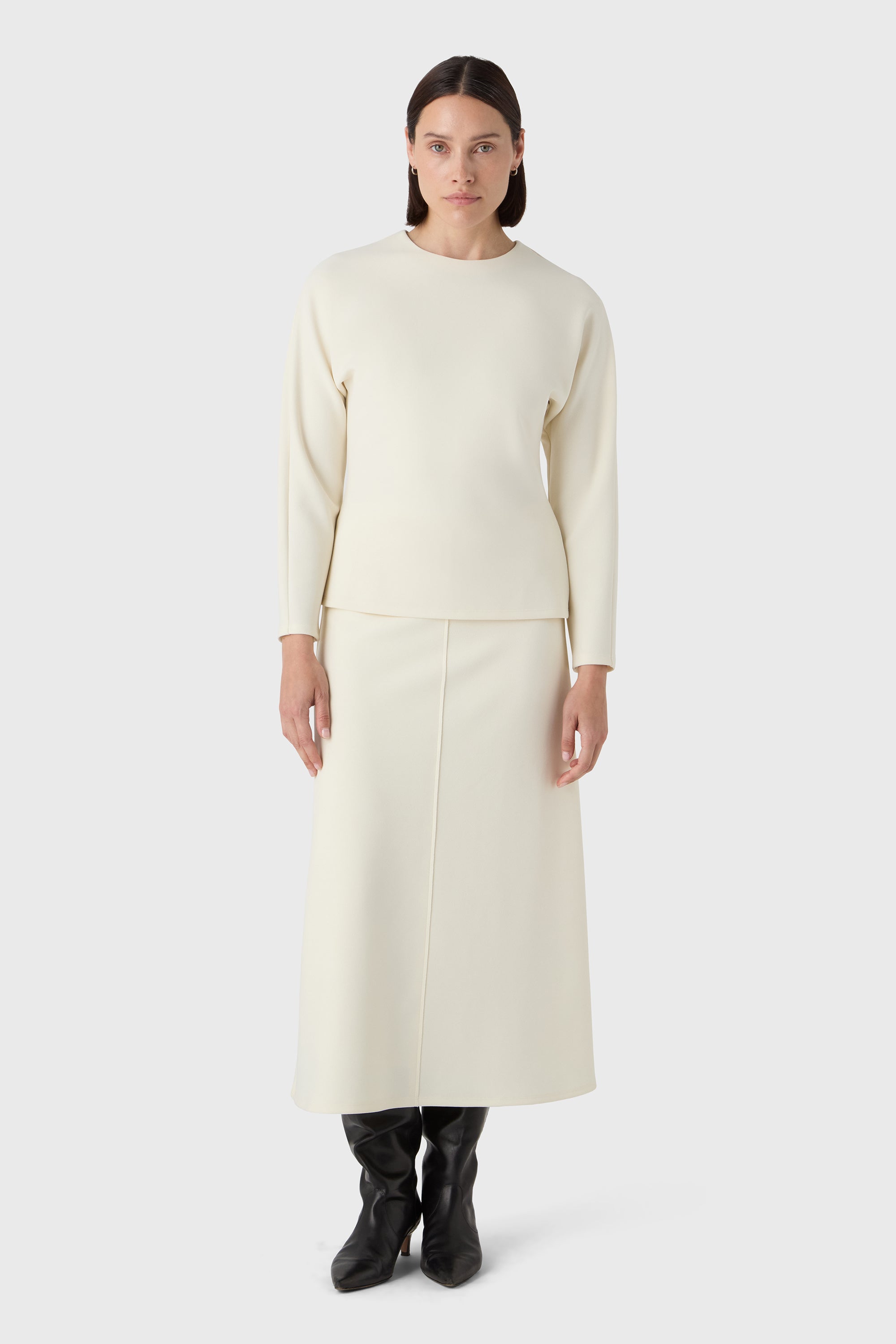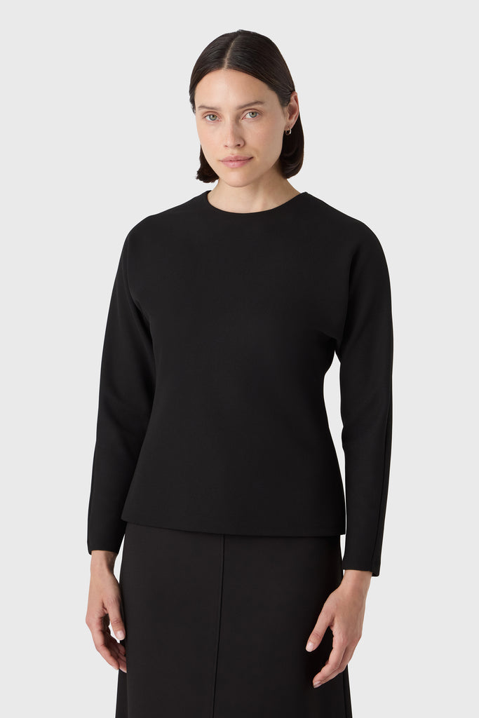 Clean lines with a sculpted feel. The Pia Top is made from superstretch jersey crepe that softly hugs the body. Designed with a round neckline and long sleeves, it pairs perfectly with the matching skirt for an elegant set — or styled on its own.
