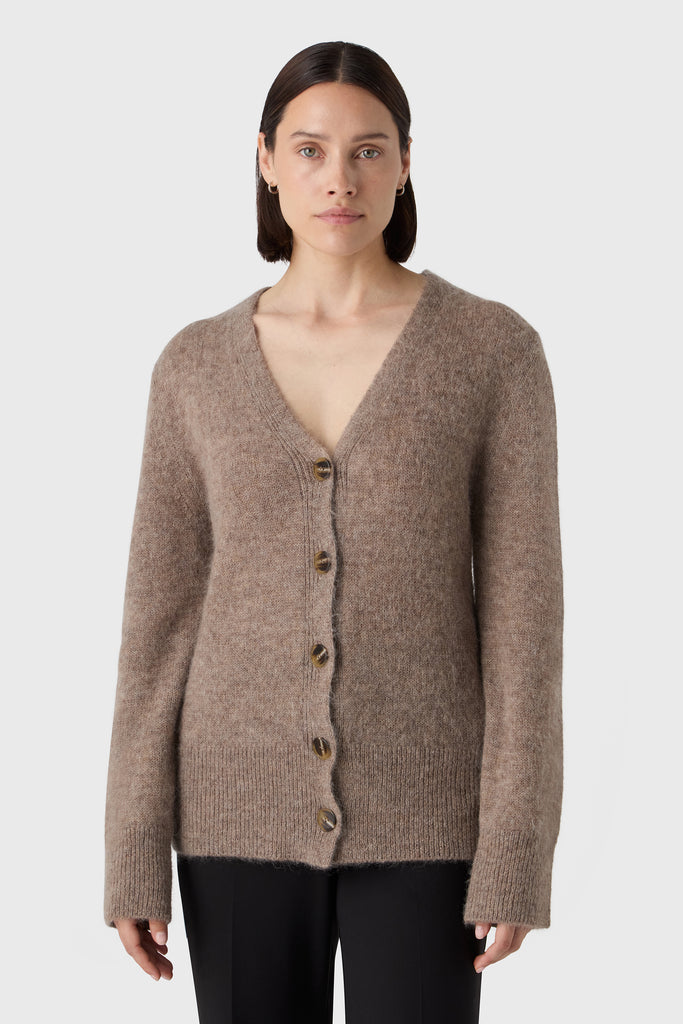 Soft warmth with laid-back elegance. The Zaira Alpaca Cardigan is knitted from supersoft alpaca with a fluffy texture, deep V neckline and tonal buttons. A versatile layer to throw over a shirt, T-shirt or dress — effortless and timeless.