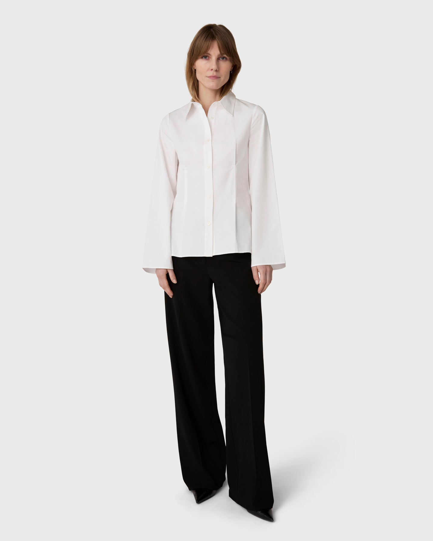 The Aurelie Cotton Shirt is a fitted cotton shirt with wide sleeves, creating a timeless, feminine silhouette. Wear on its own or styled with tailoring.