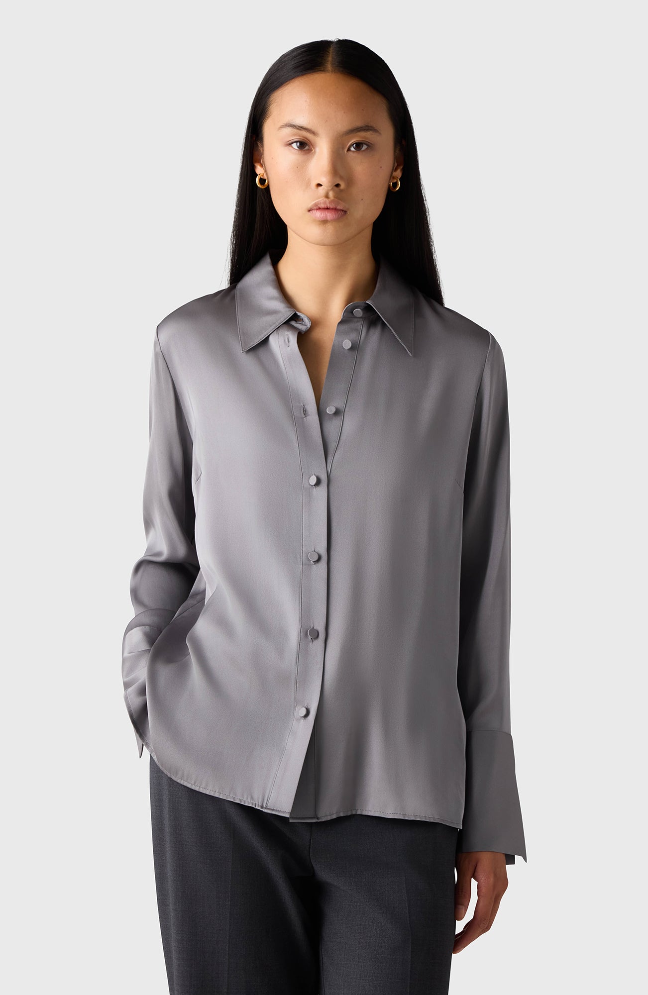 The Leonie Shirt has a slightly loose fit. Made in silk stretch, and designed with fabric-covered buttons. Wear with tailored trousers or denim to elevate your look.
