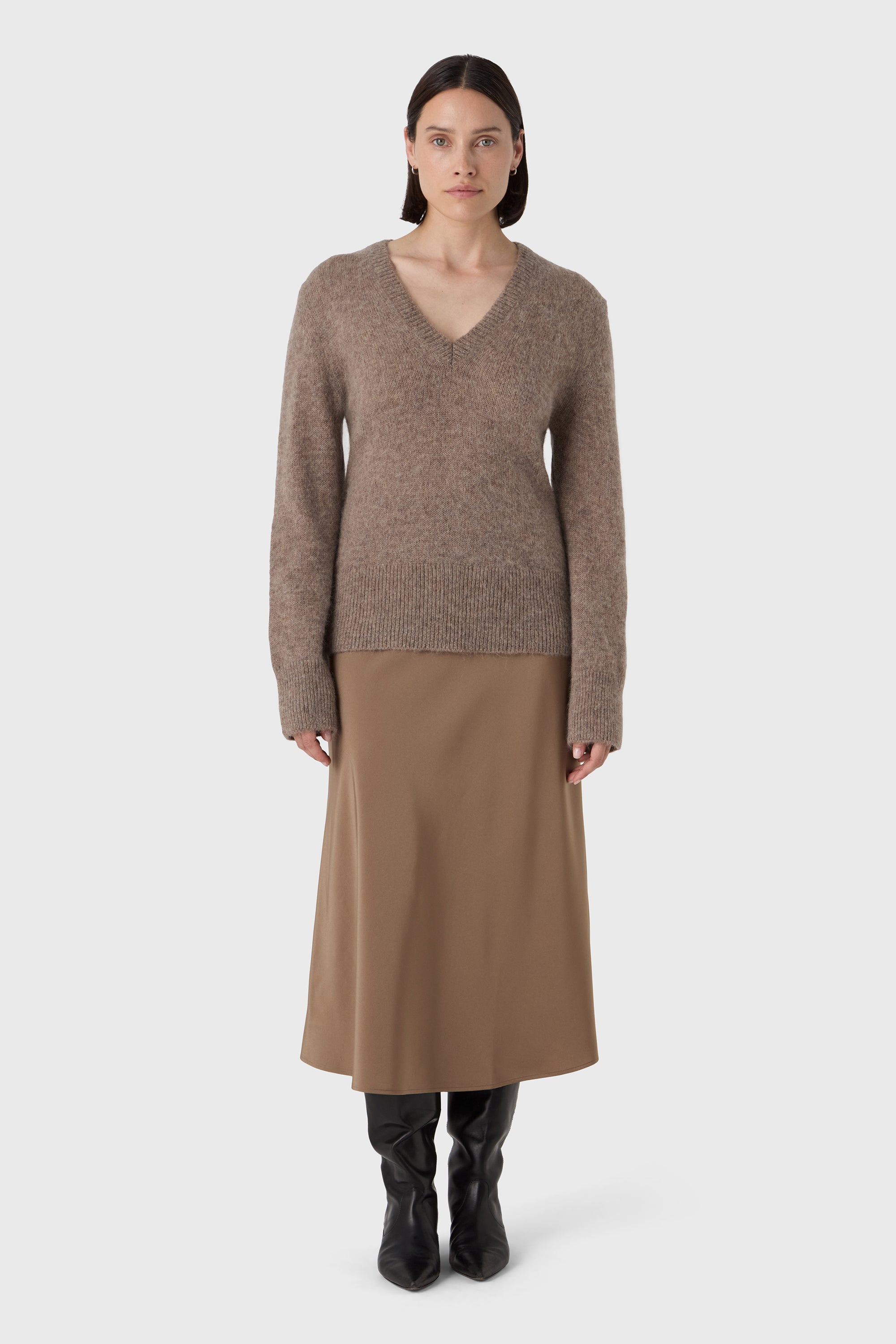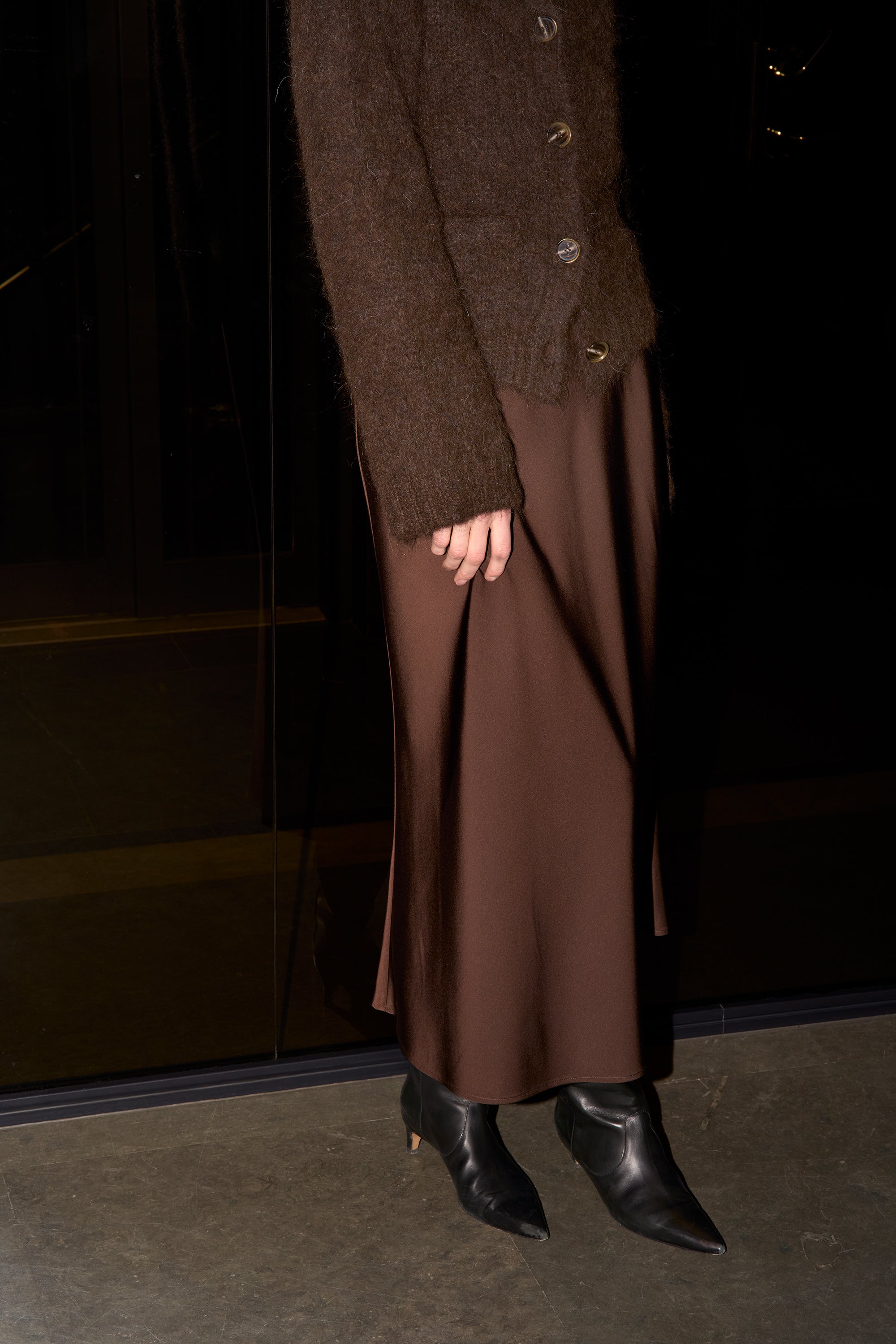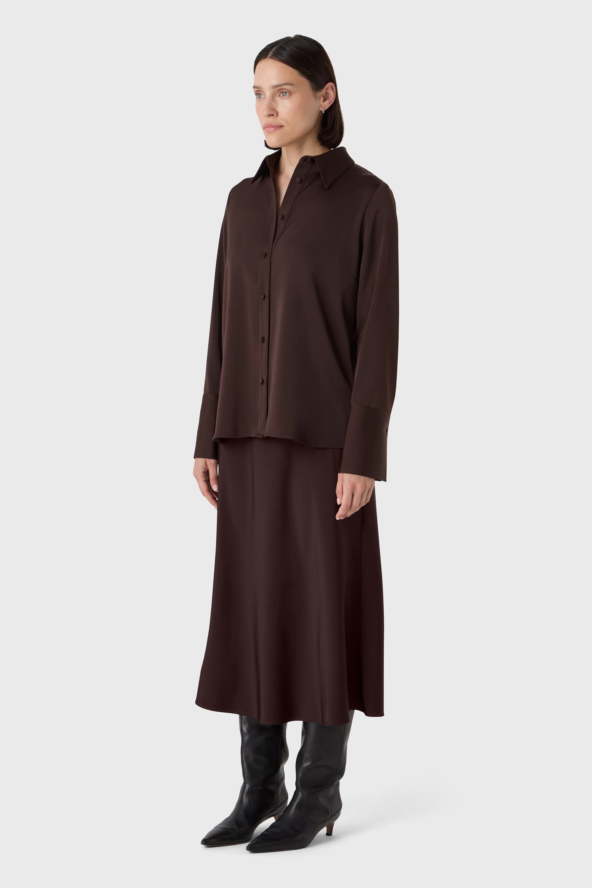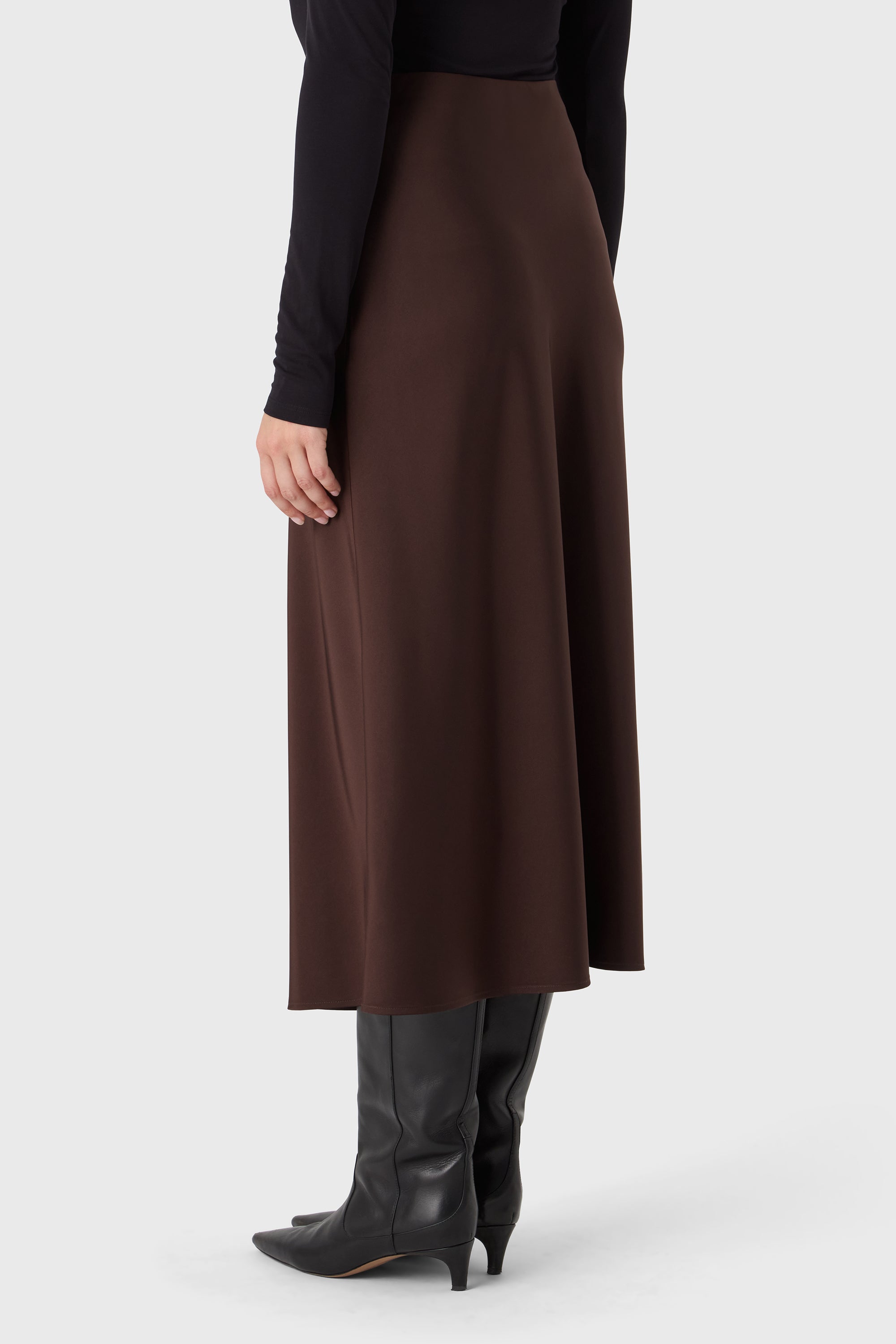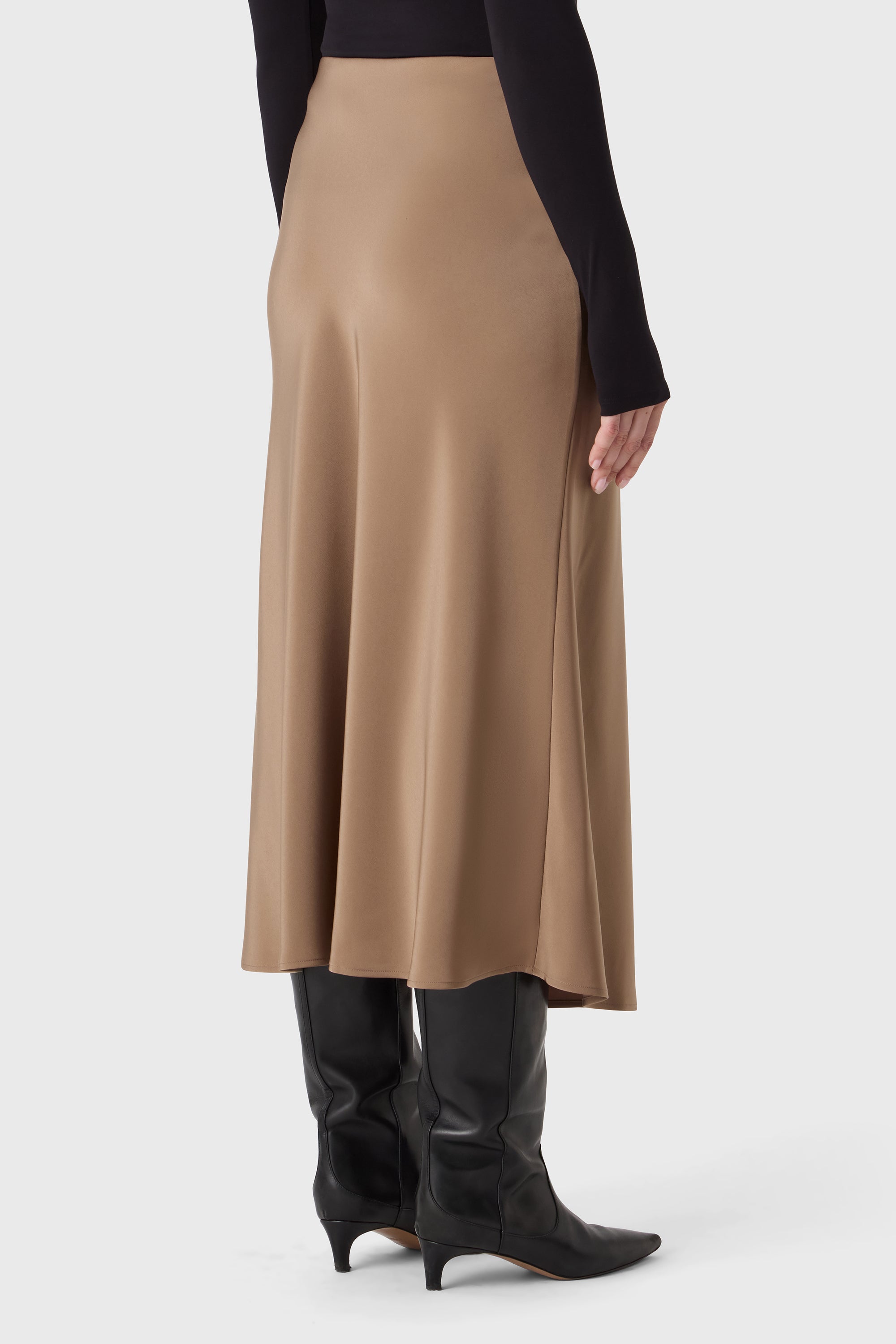 A fluid essential with quiet impact. The Ally Skirt falls to ankle length in satin stretch that flows gently around the body. The elastic waistband ensures comfort and versatility — easy to style with crisp shirts, soft knits or a matching top for a full look.