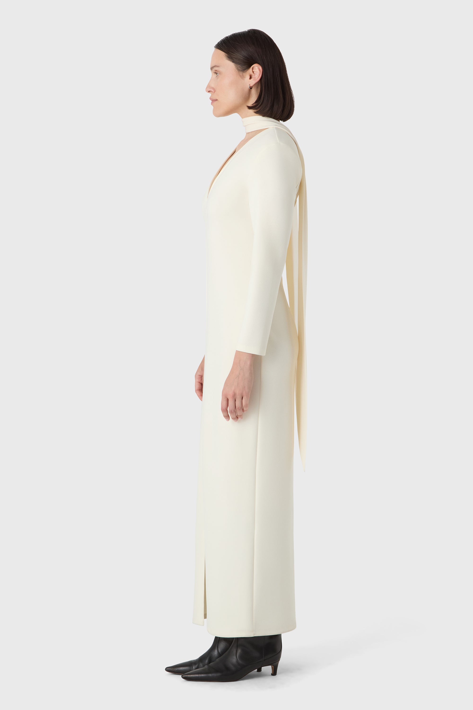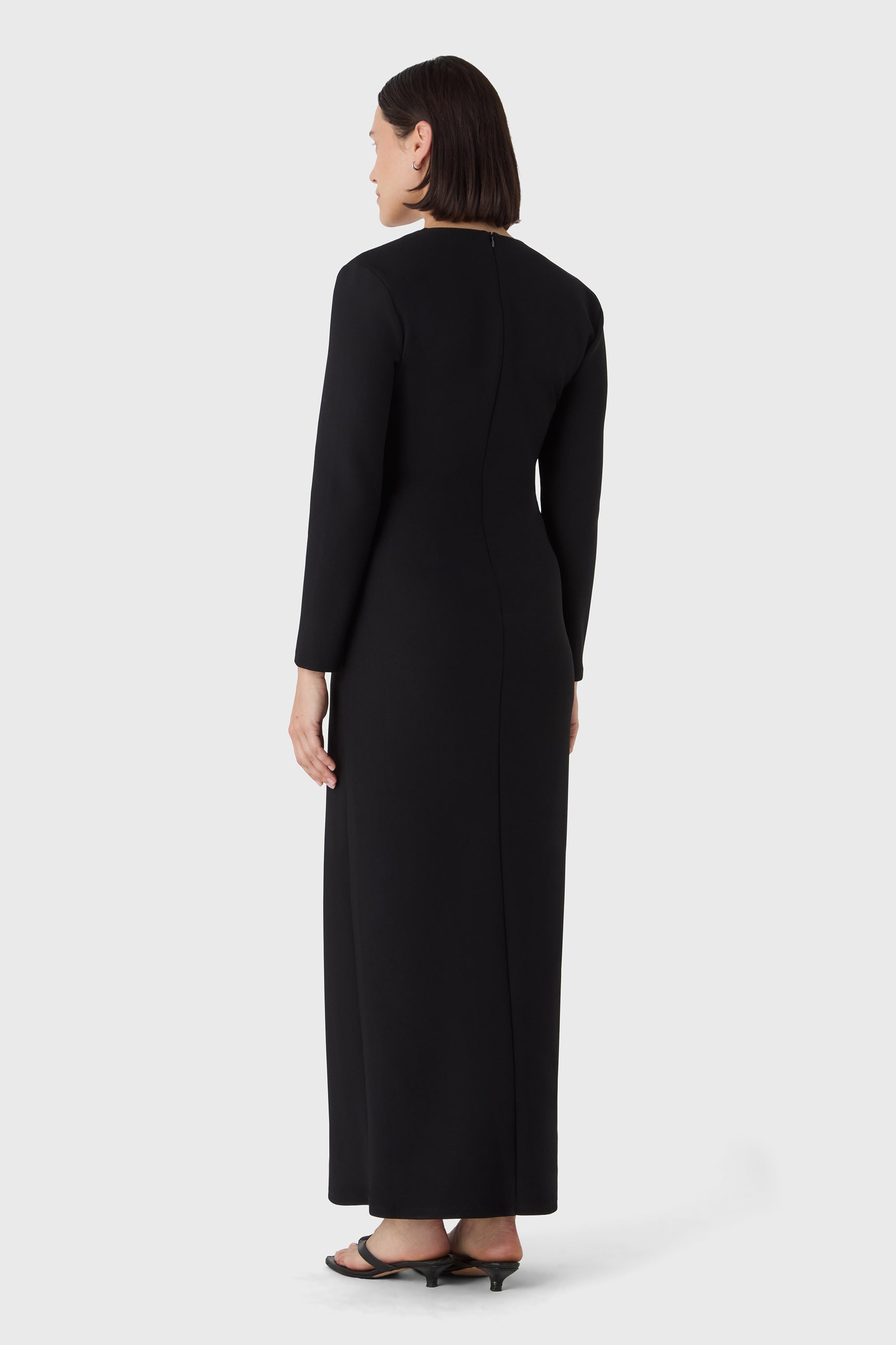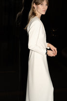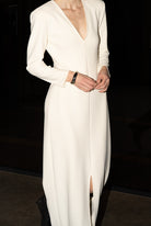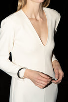 Bold and minimal. The Valerie Dress is made from sculpting superstretch jersey crepe with a deep V neckline, long sleeves and defined shoulders. A clean silhouette that makes a quiet statement — elegant from every angle.