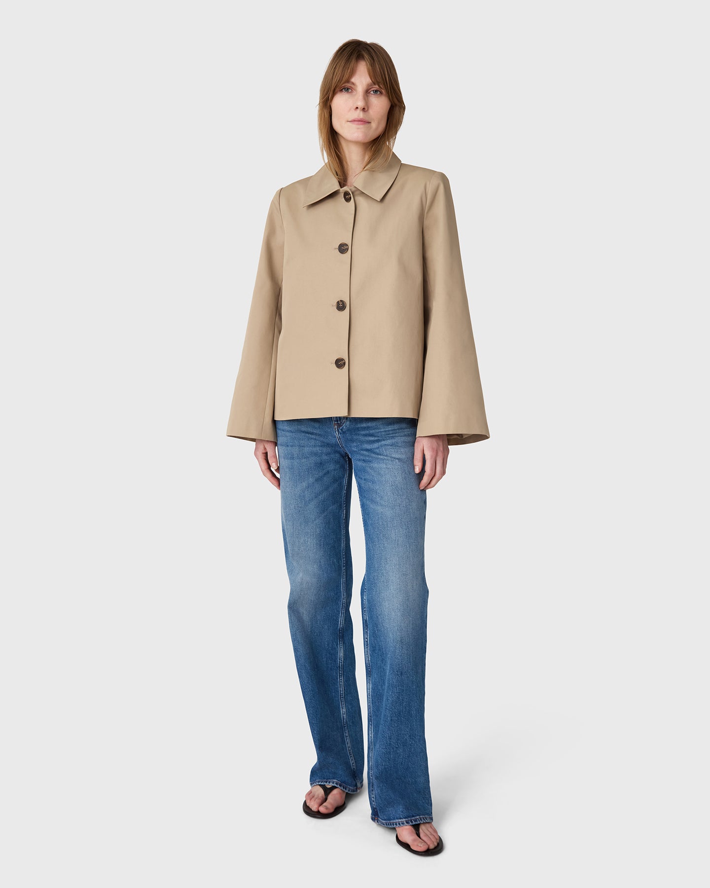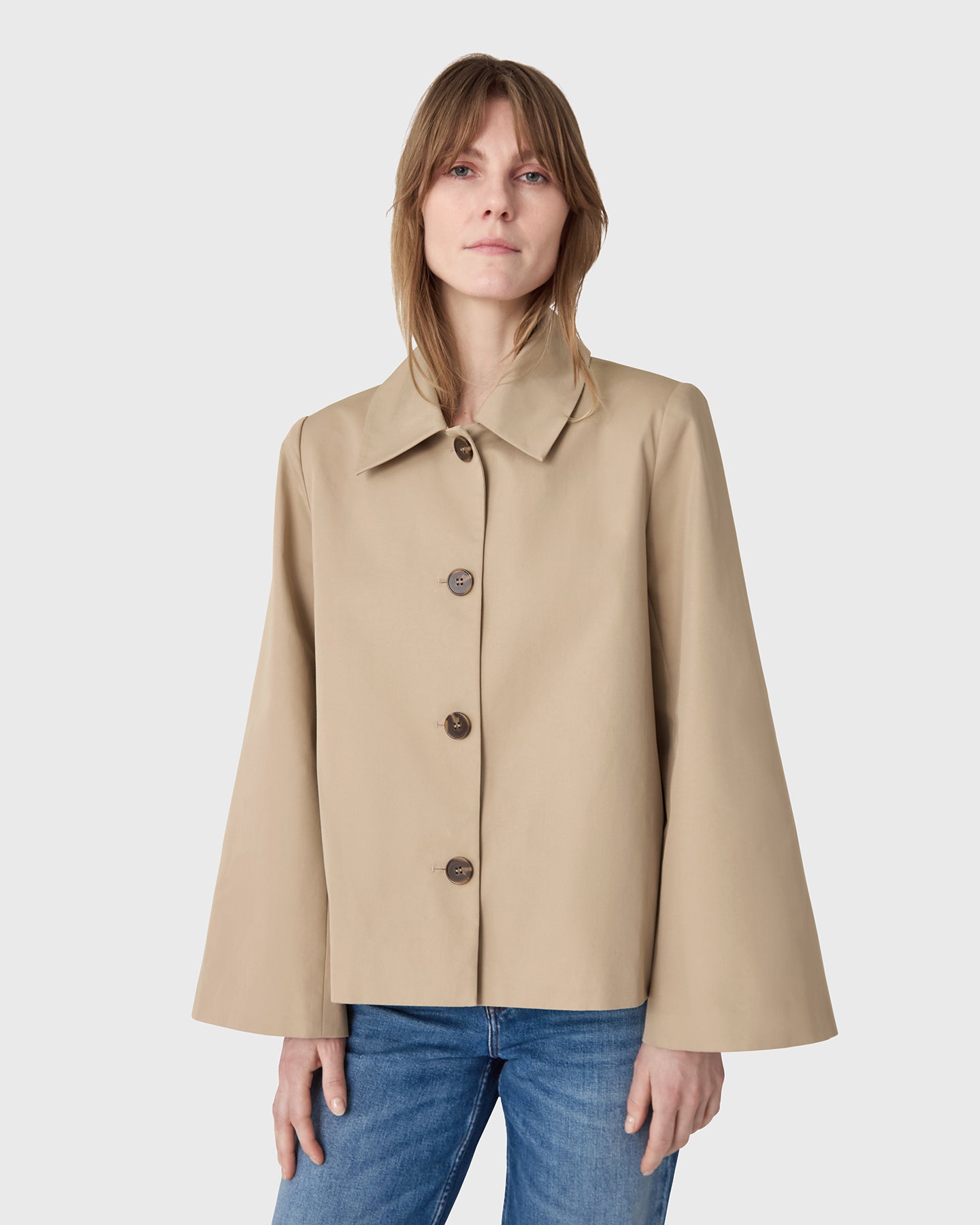 The Coline Trench Jacket is a refined trench defined by its collar, wide sleeves and clean silhouette. A modern interpretation of a timeless outer layer, designed for effortless everyday wear. Worn as a light layer, it works naturally as a spring jacket, yet layers easily over knitwear as temperatures shift.