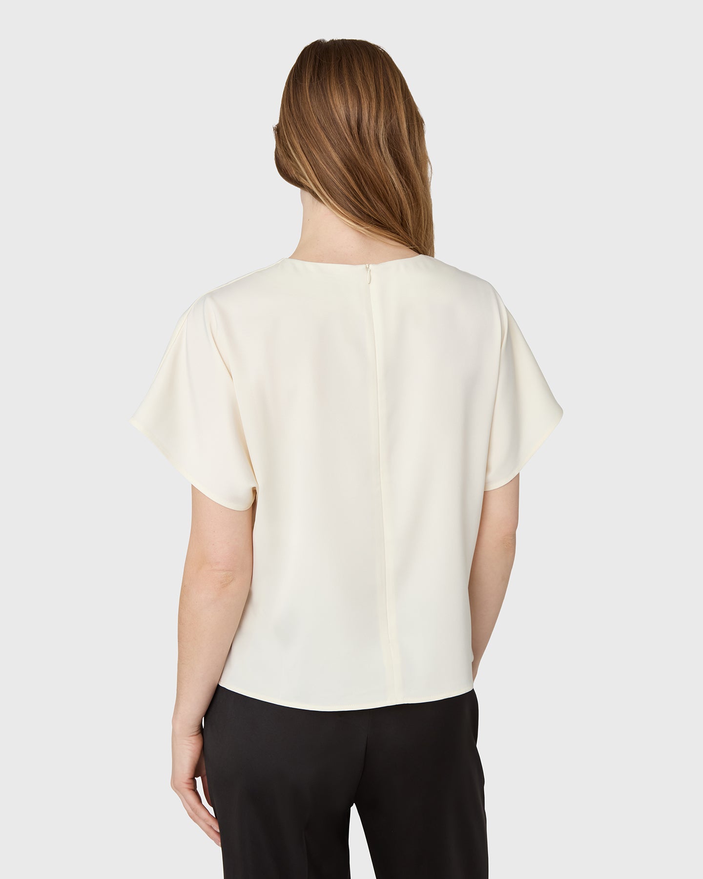 The Mia Satin Top is a short-sleeved top with a round neckline and a slightly fitted shape. In satin stretch with a decorative seam, pair with the matching Rhonda Satin Skirt or denim.