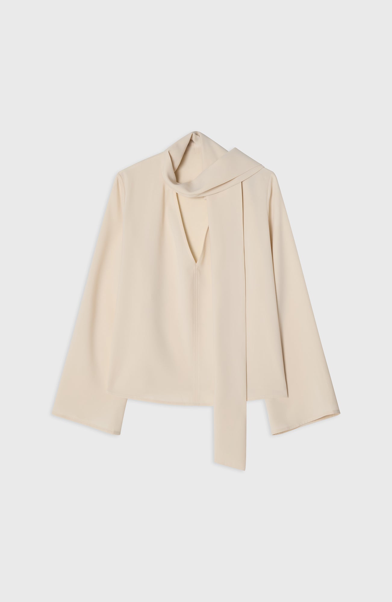 Effortless elegance with a twist. The Renée Blouse is made from soft poly twill and features long sleeves, a fluid drape and a generous shawl collar that can be styled in multiple ways. Tie it as a bow, let it fall freely, or wrap it around — it adapts to your day.