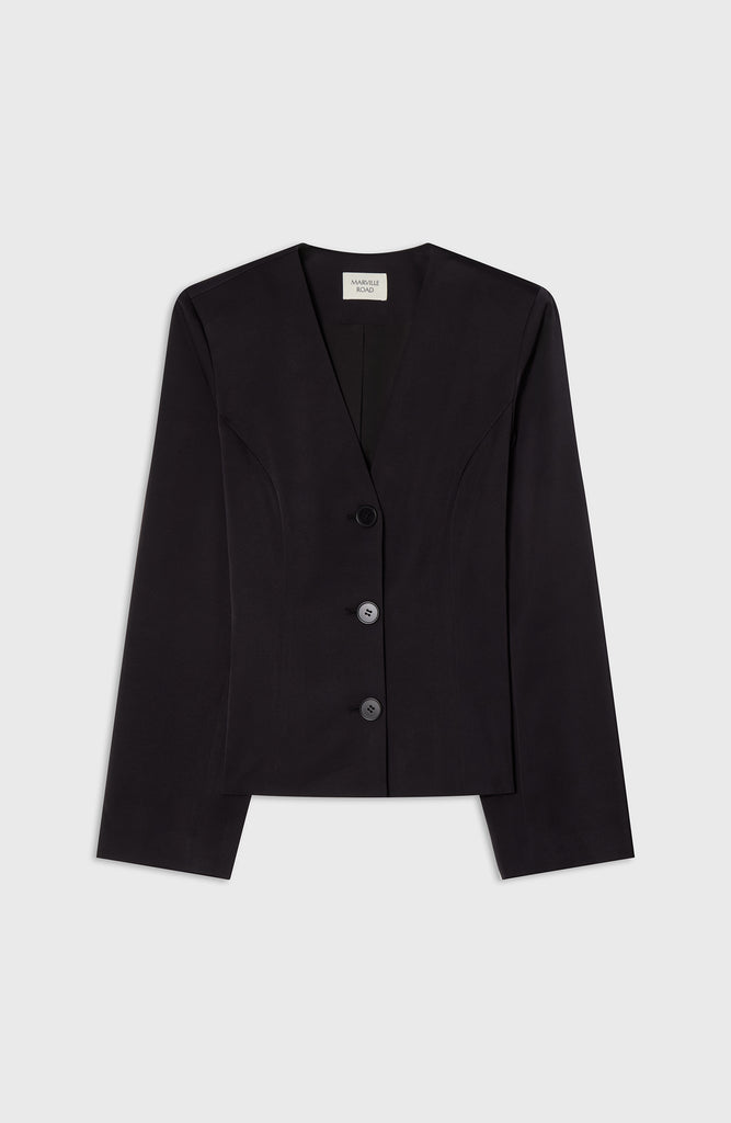 Li-kavajen har V-ringning, insvängd midja och hellånga ärmar som skapar en modern och feminin silhuett. De diskreta knapparna ger en elegant detalj till den i övrigt avskalade designen – bär som kostym eller som ensam statement.