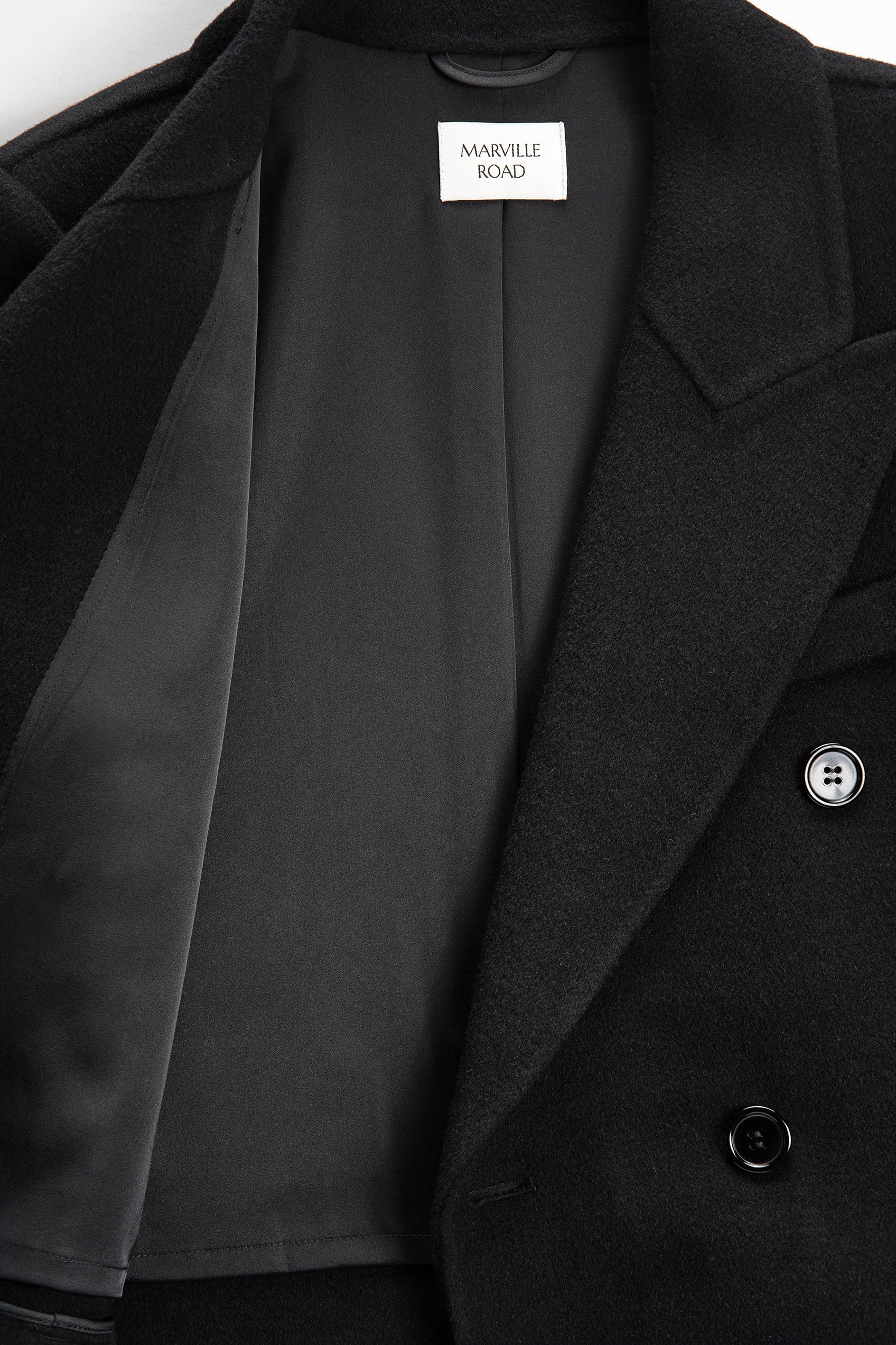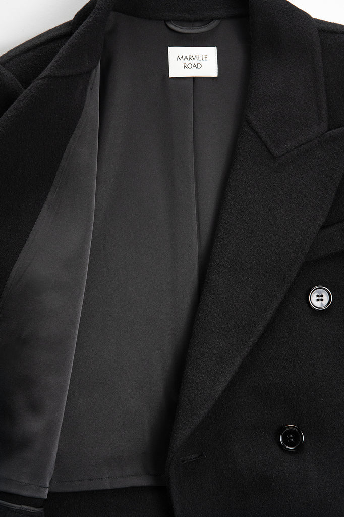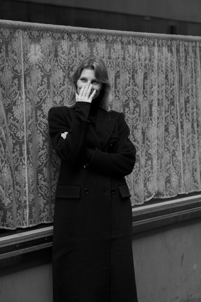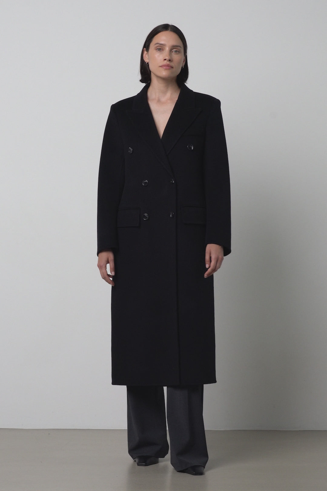Skräddad för kalla dagar. Paleteau-kappan är sydd i 100% mjuk ull med dubbel knäppning, markerade axlar och en generös krage. Kappan är fodrad upptill för struktur och värme, medan den nedre delen är ofodrad för lätthet och rörelse.