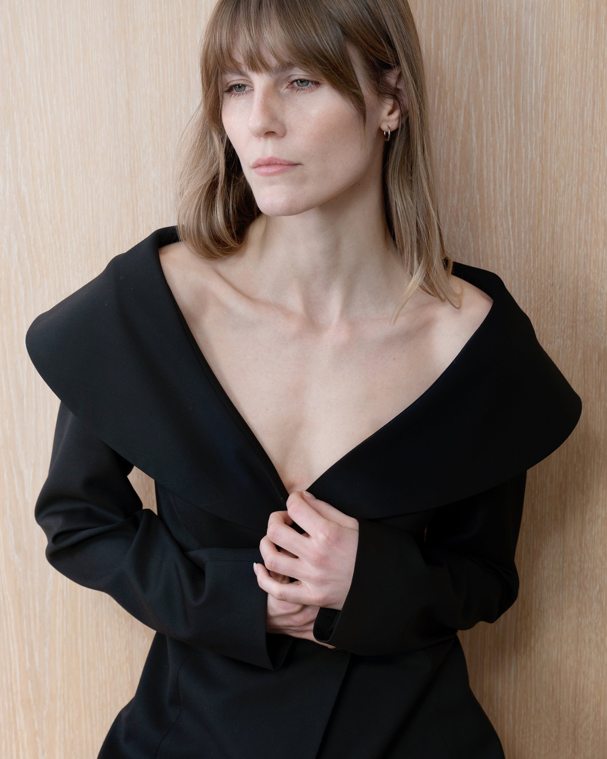 Designad för att gå från skrivbord till middag, matcha den med The Ingrid Trousers för en polerad, strömlinjeformad känsla, eller med The Wide Denim för en mer avslappnad men ändå genomtänkt kombination.